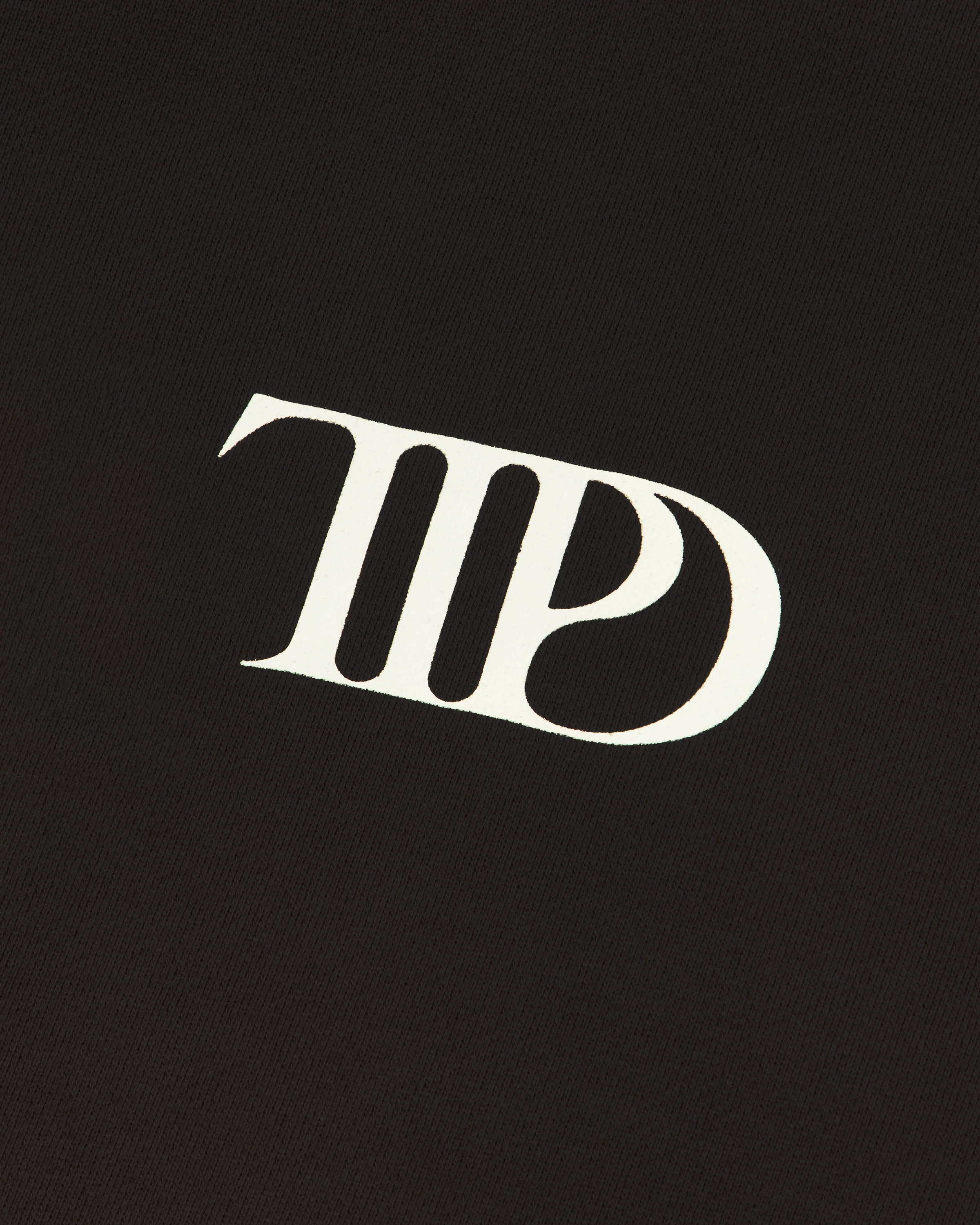 Dark brown hoodie with front pocket featuring "TTPD" album logo printed on front and photo of Taylor Swift, "Who's Afraid Of Little Old Me?" song lyrics, "You Should Be" song lyrics and "The Tortured Poets Department" in box design printed on back.